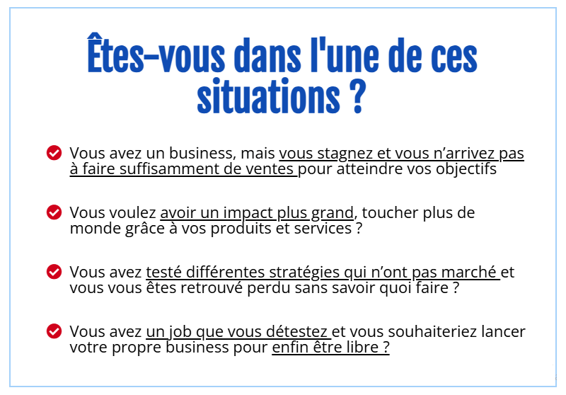 Si vous avez répondu OUI à l'une de ces questions, alors vous êtes au bon endroit